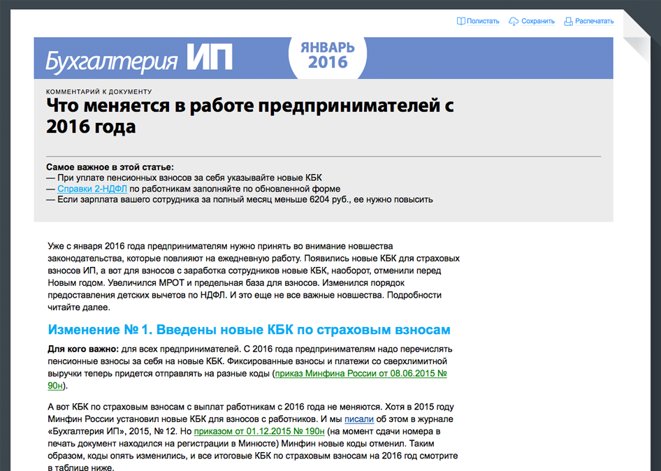 «Бухгалтерия ИП» подробно рассказывает об изменениях законодательства, важных для индивидуального предпринимателя, о том, как вести налоговый и бухгалтерский учет, как оформлять необходимые документы.