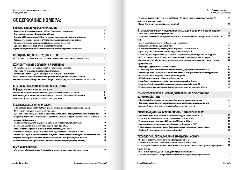 По оценке экспертов, потребности государства составляют как минимум четверть отечественного IT-рынка. Бюллетень призван освещать все аспекты в процессе информатизации государства: опыт и практика использования технологий в государственных учреждениях, ведомствах, организациях, предприятиях оборонно-промышленного комплекса; обеспечение информационной безопасности; подготовка ИТ-кадров; внедрение веб-технологий.