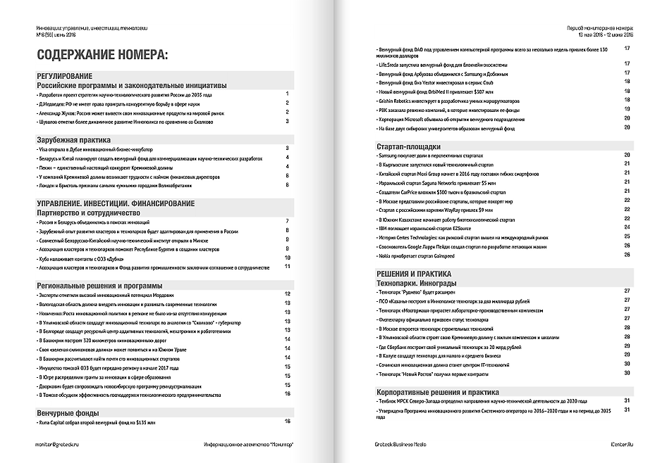 Бюллетень «Инновации: управление, инвестиции, технологии» — эксклюзивный инструмент для принятия правильных решений. В ежемесячной динамике мы отслеживаем все события в области инновационной экономики, инновационной деятельности предприятий, коммерциализации технологий.