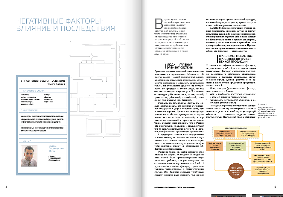 Для многих успешных руководителей журнал давно стал настольной книгой, помогающей в повседневной деятельности, вовремя подбрасывающей свежие идеи и помогающей выбрать нужное направление. Это высокопрофессиональные знания, которые сочетают передовые теоретические разработки с сугубо практическими рекомендациями. Универсальные методики, которые публикуются на страницах издания, можно применять в разных сферах экономики: производстве, строительстве, транспорте, торговле.