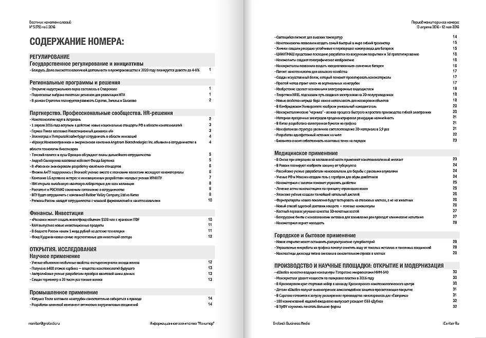 Бюллетень «Вестник нанотехнологий» – специализированное издание, на страницах которого широко освещаются тенденции развития отечественных нанотехнологий, их перспективы и последние разработки в данной области.